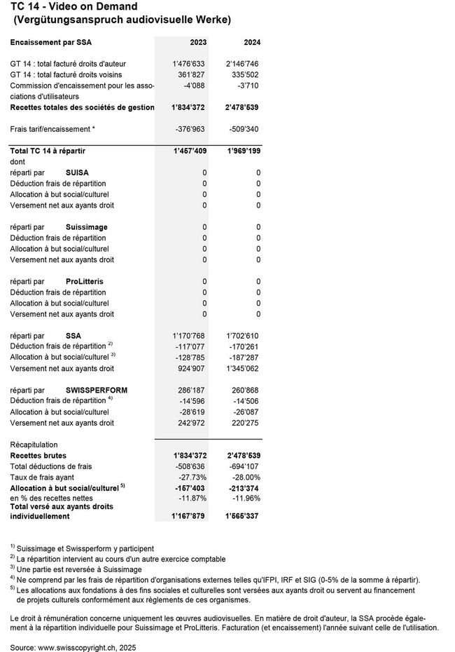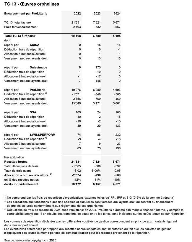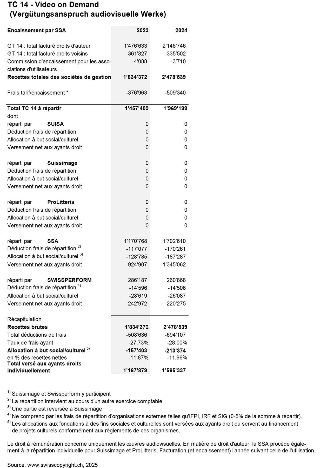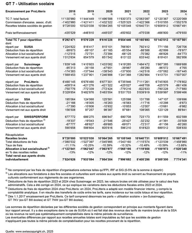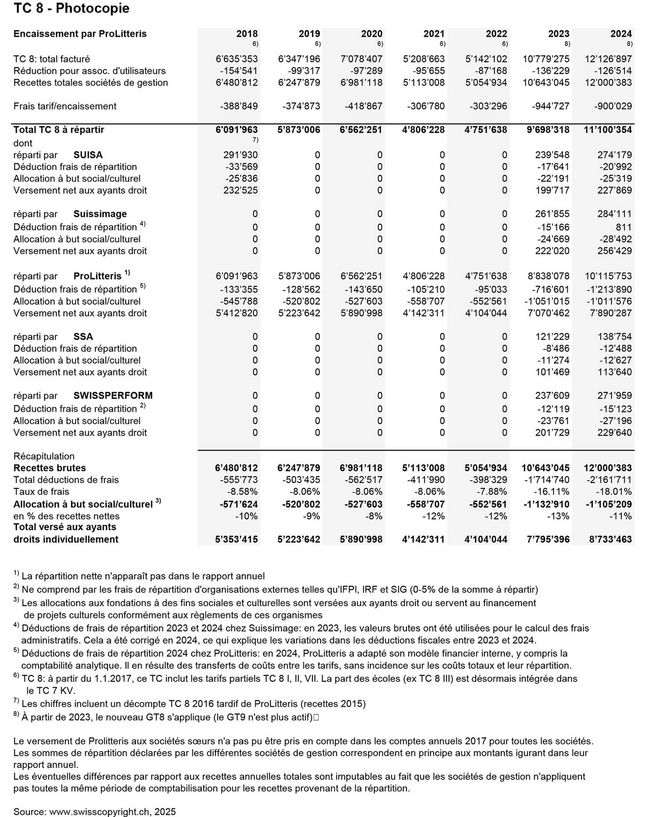 Les tableaux ci-après indiquent précisément les flux de capitaux pour les différents tarifs communs, depuis la facturation aux utilisateurs jusqu’à la répartition individuelle entre les ayants droit.